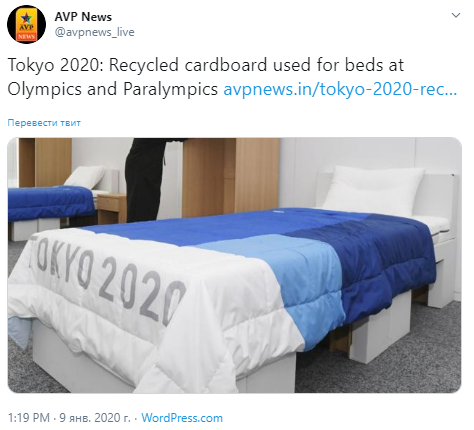 Для участников Олимпиады и Паралимпиады-2020 в Токио каркасы для кроватей сделают из перерабатываемого картона, а матрацы - из пластика. Об этом сообщает служба BBC со ссылкой на организаторов.