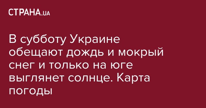В субботу Украине обещают дождь и мокрый снег и только на юге выглянет солнце. Карта погоды