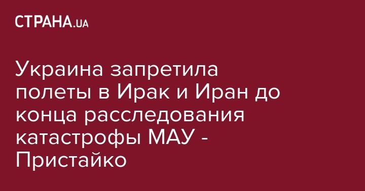 Украина запретила всем национальным авиаперевозчикам выполнять полеты в Ирак и Иран до конца расследования авиакатастрофы украинского лайнера под Тегераном.