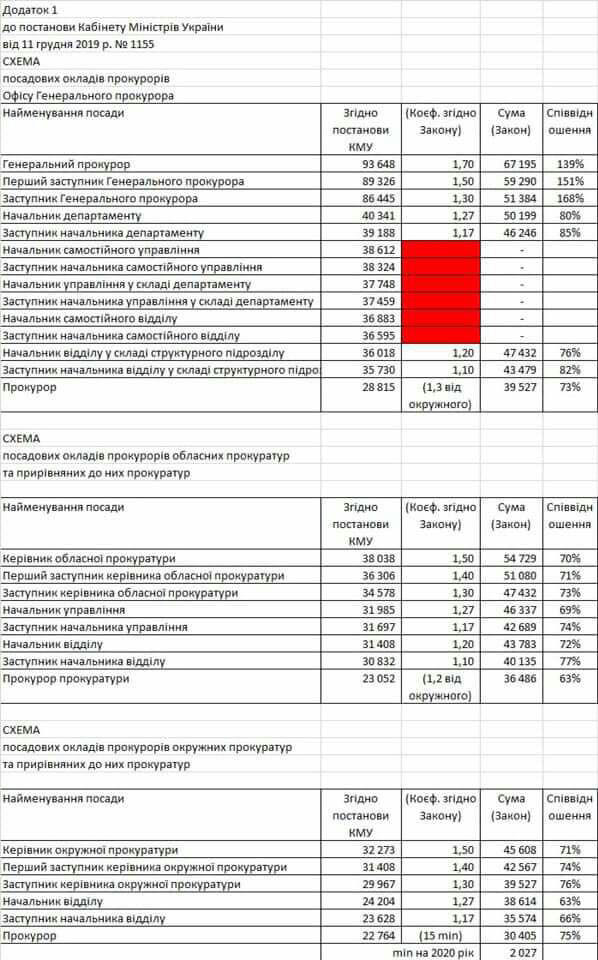 По постановлению Гончарука только у руководства Офиса генпрокурора зарплаты в разы больше, чем обязаны быть по закону о прокуратуре. Хотя в юридической иерархии закон имеет высшую силу, чем постановление правительства.
