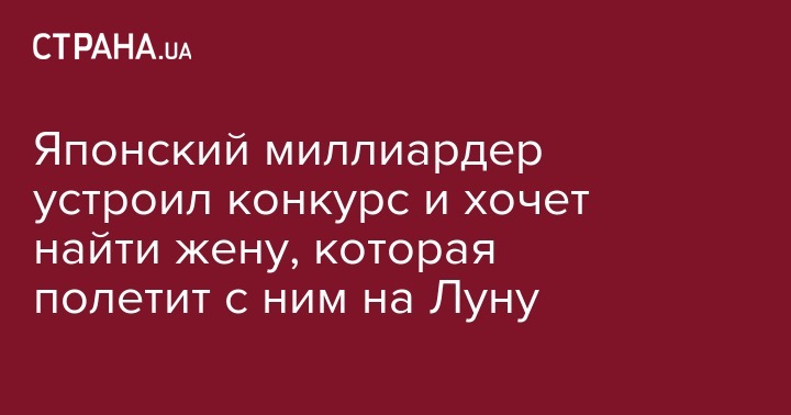 Японский 44-летний миллиардер Юсаку Маэдзава объявил конкурс для девушек, которые готовы стать его женой и полететь с ним на Луну. Его проект называется "сватовство для серьезных отношений один на один". Об этом он написал в Twitter.