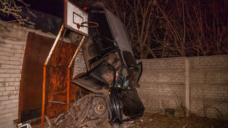 ЧП произошло около 00:30 на улице Криворожской. По предварительным данным, пьяный водитель ехал по улице Криворожской в сторону улицы Киевской. После того, как он зацепил Dacia, Nissan подбросило вверх, авто залетело на бетонные блоки, которые и стали своеобразным трамплином, отправившим автомобиль в дальнейший полет. В итоге Nissan перелетел через гараж и повис на заборе частного дома.