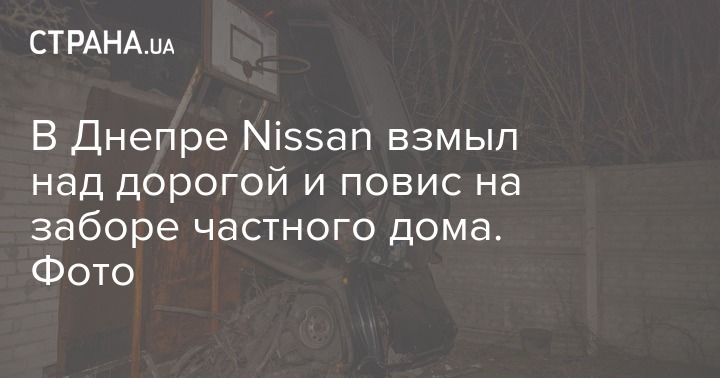 Сегодня ночью, 13 января, в Днепре произошло не совсем обычное ДТП. Здесь водитель Nissan не справился с управлением и сначала врезался в Dacia, а затем пролетел по воздуху и повис на заборе, ограждающем спортплощадку в частном доме.
