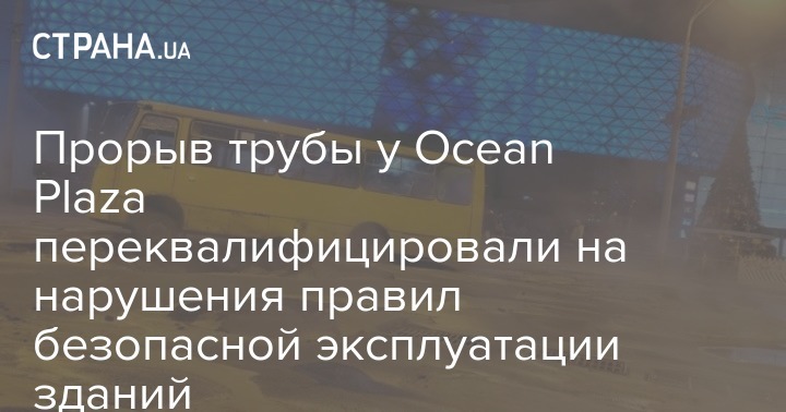 Прорыв трубы у Ocean Plaza переквалифицировали на нарушения правил безопасной эксплуатации зданий