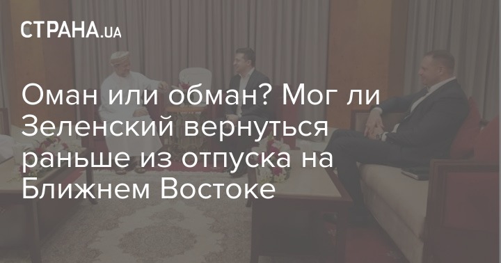 Напомним, что Владимир Зеленский на Новый год прибыл на Прикарпатье в Ивано-Франковскую область. А затем тайно отбыл в Оман, хотя перед этим Офис президента сообщил, что Зеленский задержится в Карпатах еще на неделю. Однако оказалось, что президент тайно отбыл в Оман вместе с семьей, о чем эксклюзивно сообщила "Страна" 5 января. После этого Офис президента заявил, что глава государства пребывает заграницей с рабочей поездкой.