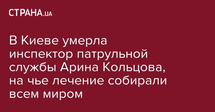 Сегодня в Киеве от заболевания легких умерла инспектор патрульной службы Национальной полиции Украины Арина Кольцова (Птицман). Об этом первыми в сети Facebook сообщили коллеги Арины.