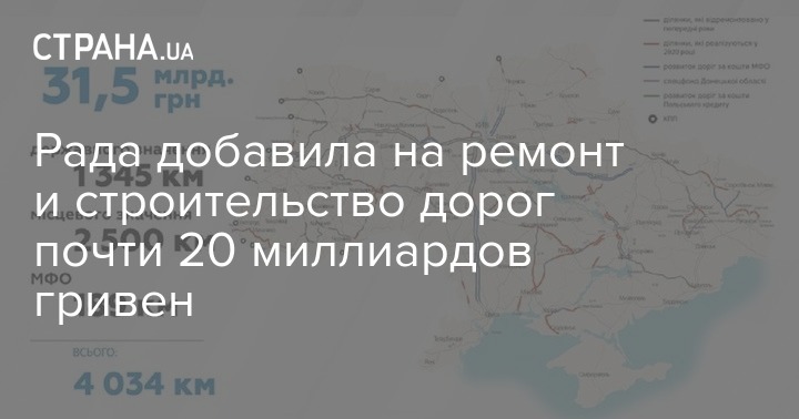Ранее бюджетный комитет Рады поддержал законопроекты №2660 и №2661 о привлечении дополнительных 20 млрд грн на дороги. В настоящее время в Дорожном фонде на 2020 год заложено более 30 млрд грн на дороги общегосударственного значения.
