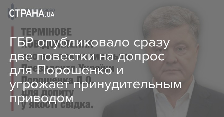 Государственное бюро расследований опубликовало две повестки на допрос бывшего президента Украины Петра Порошенко. Его вызывают в качестве свидетеля на досудебное расследование по ряду уголовных дел.