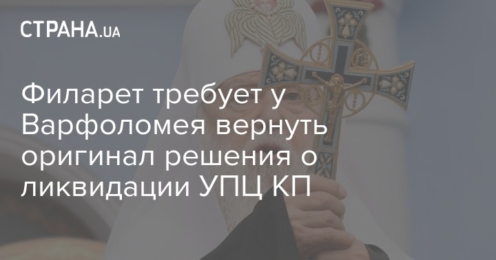Филарет требует у Варфоломея вернуть оригинал решения о ликвидации УПЦ КП