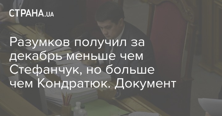 Спикер Верховной Рады Дмитрий Разумков получил за декабрь 37 322,28 гривен в качестве зарплаты. Оклад Руслана Стефанчука и Елены Кондратюк за прошлый месяц составил - 54 125,4 и 34 614,59 гривен соответственно.