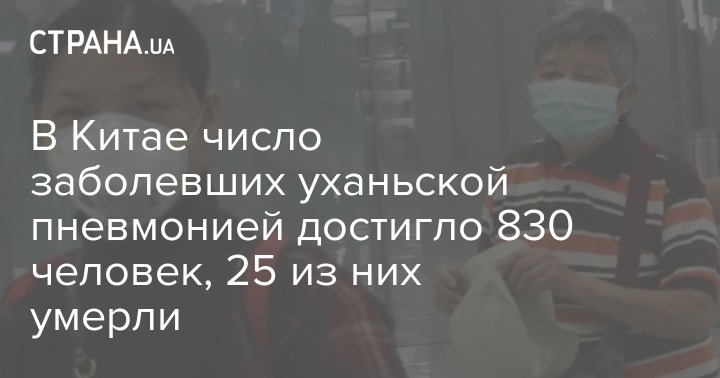 По состоянию на утро пятницы, 24 января, в Китае число заболевших составило уже 830 человек, 25 из них скончались. Об этом передает Интерфакс.