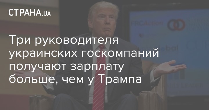 В Украине директор государственного предприятия "Антонов" Алексей Донец, председатель правления акционерного общества "Укрзализныця" Евгений Кравцов и генеральный директор государственной компании "Укрпочта" Игорь Смелянский зарабатывают больше, чем президент США Дональд Трамп. Последний получает 400 тысяч долларов в год, передают "Украинские новости".