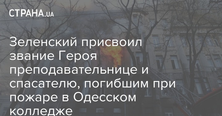 Звание Герой Украины с вручением ордена "Золотая звезда" (посмертно) присвоено погибшим при пожаре в здании Одесского колледжа экономики преподавателю высшей математики и информационных дисциплин Анне Бортюк и командиру отделения государственного пожарно-спасательного отряда Главного управления ГСЧС Украины в Одесской области, прапорщику службы гражданской защиты Сергею Шатохину. Об этом говорится в Указе президента Украины Владимира Зеленского, опубликованном на сайте главы государства.