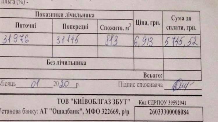 Платежка советника президента Украины за газ в январе. Фото: Илья Новиков