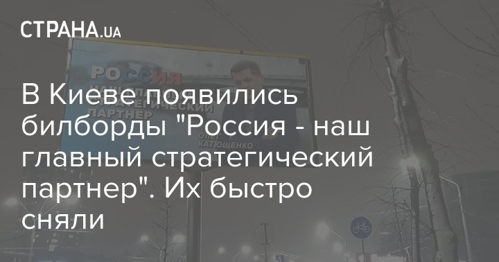 В среду, 29 января, в Киеве появились билборды с надписью "Россия – наш главный стратегический партнер". Неообычная для последнего времени реклама за подписью предпринимателя Олега Катющенко вызвала резонанс у киевлян. Не исключено, что это была провокация против Катющенко - бизнесмена, который работает на строительном рынке столицы.