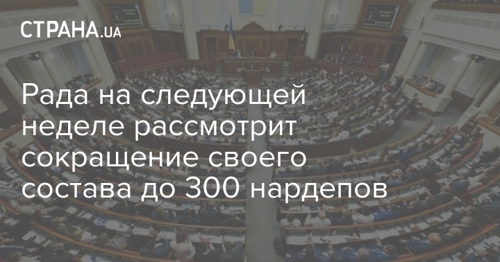 Парламент Украины на предстоящей пленарной неделе может одобрить внесение изменений в статьи 76 и 77 Конституции о том, чтобы уменьшить конституционный состав Верховной Рады до 300 человек.