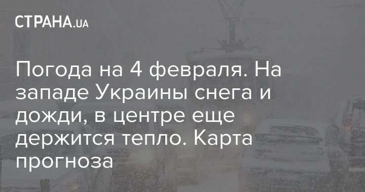 Погода на 4 февраля. На западе Украины снега и дожди, в центре еще держится тепло. Карта прогноза