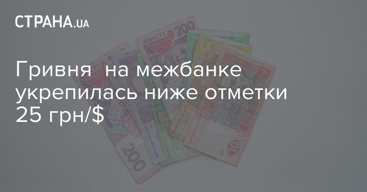 Гривня на межбанке укрепилась ниже отметки 25 грн/$