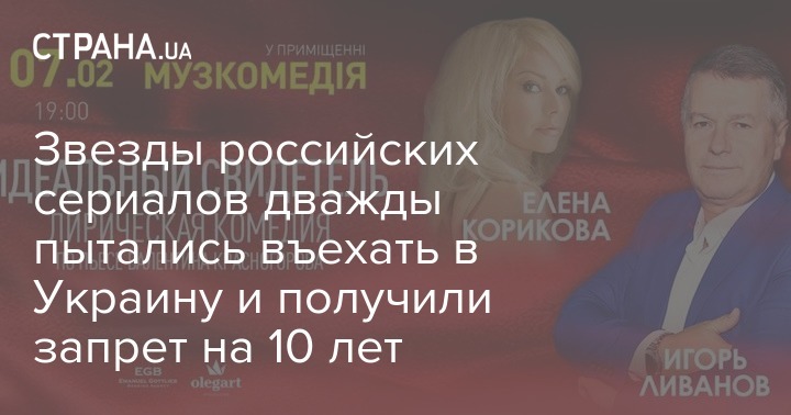 Российским актерам, дважды пытавшимся пересечь украинскую границу, на 3 года и на 10 лет закрыли въезд в Украину. Среди них оказались звезда "Бедной Насти" Елена Корикова, актер фильма "72 метра" Игорь Ливанов и исполнитель роли Романова в "Интернах" Павел Баршак.