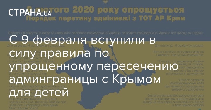 С сегодняшнего воскресенья, 9 февраля, вступили в силу правила, упрощающие пересечение административной границы с Крымом для детей в возрасте до 16 лет.