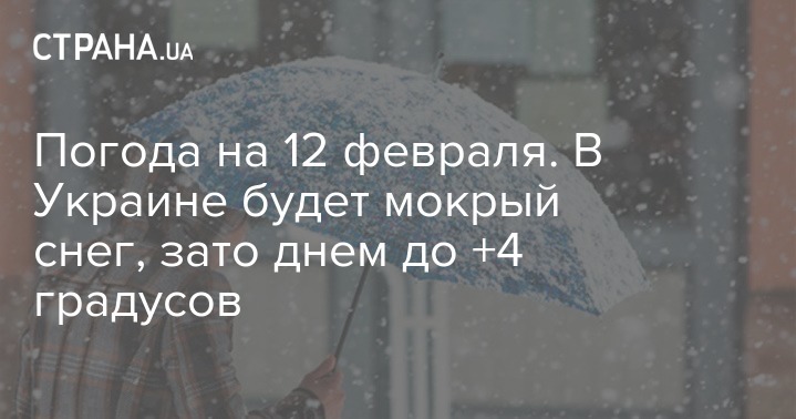 В среду, 12 февраля, в большинстве областей Украины ожидается мокрый снег. Температура воздуха будет колебаться на уровне 0…+4 градусов.