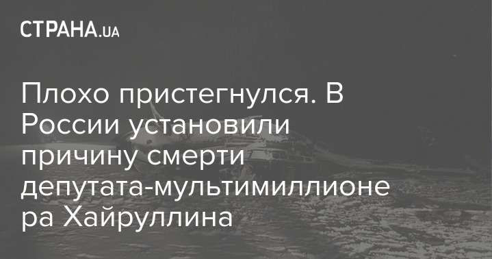 Установлена причина смерти депутата Госдумы и мультимиллионера Айрата Хайруллина, погибшего при крушении частного вертолета Bell 407. Пилот вертолета Хайруллина утверждает, что тот сидел на месте второго пилота, но не управлял, а занимался своим планшетом. Погиб же из-за того, что был плохо пристегнут.