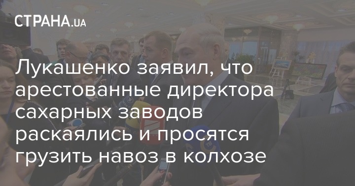 "Я жестоко спрашиваю с руководителей. Недавно (задержали) сразу всех четверых (директоров) сахарных заводов. Вот сидят сейчас и просятся - отпустите, пойдем в колхоз навоз грузить. Я говорю: "Мы вилами уже навоз не грузим, поэтому сидите", - сказал Лукашенко.