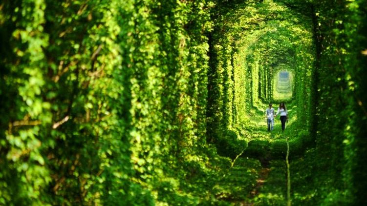 Так, "туннель любви" расположен возле поселка Клевань в Ровенской области и представляет собой заброшенный железнодорожный тоннель с листьями. Его длина составляет около 4 км.
