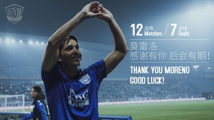 Футболист и руководство клуба пришли к взаимоприемлемому компромиссу, который позволил Морено досрочно расторгнуть контракт. Шицзячжуан Эвер Брайт пожелал в официальном Twitter удачи своему бывшему игроку.