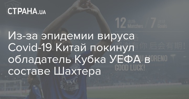 Ради собственной безопасности и во избежание проблем со здоровьем Китай покинул боливийский экс-форвард Шахтера Марсело Морено. Последней командой 32-летнего игрока был китайский клуб Шицзячжуан Эвер Брайт, который выступает во втором дивизионе.