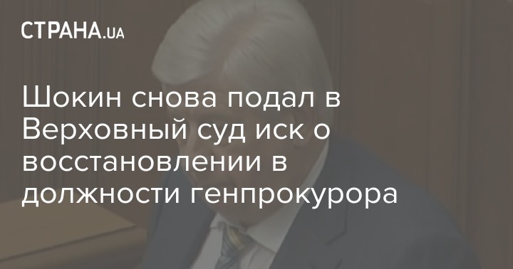 Шокин снова подал в Верховный суд иск о восстановлении в должности генпрокурора