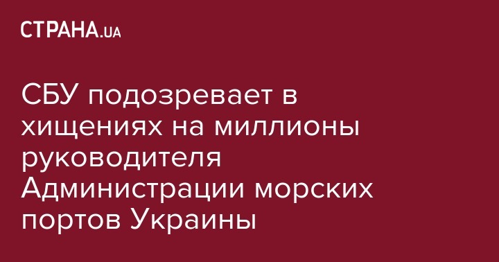 Как сообщала "Страна", 26 июля сотрудники службы безопасности Украины и Национальной полиции провели обыски в помещениях Госавиаслужбы, а также Администрации морских портов Украины (АМПУ). Открыто 2 уголовных дела по хищению государственных средств и злоупотреблению властью.