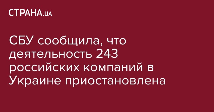 СБУ сообщила, что деятельность 243 российских компаний в Украине приостановлена