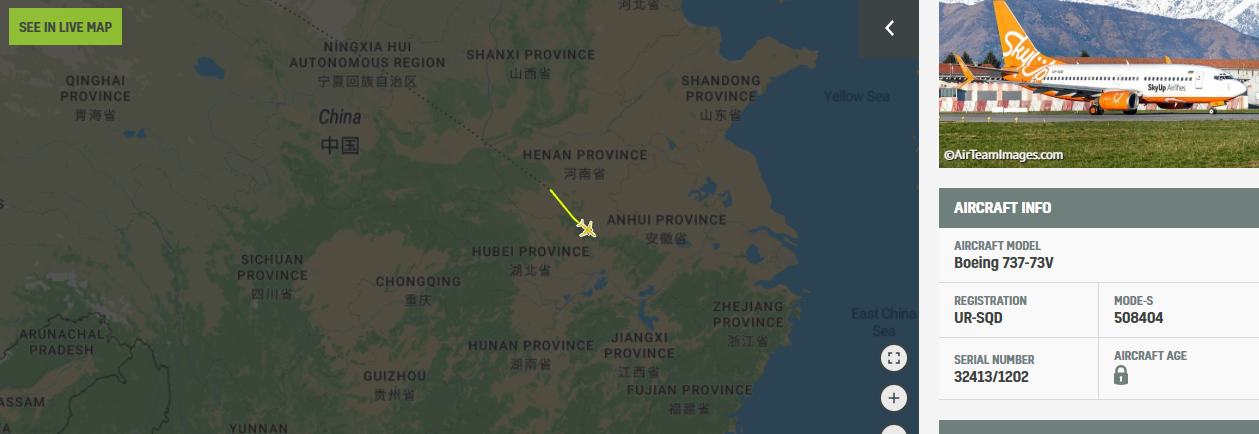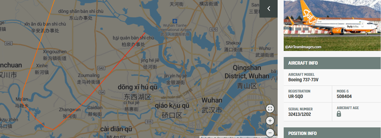 19:15 Борт SkyUp вылетел из Уханя.