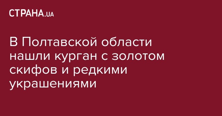 Археологи обнаружили скифское захоронение 7 века до н.э. в Котелевском районе Полтавcкой области. В кургане было золото скифов и редкие украшения. Об этом сообщает "УНН".