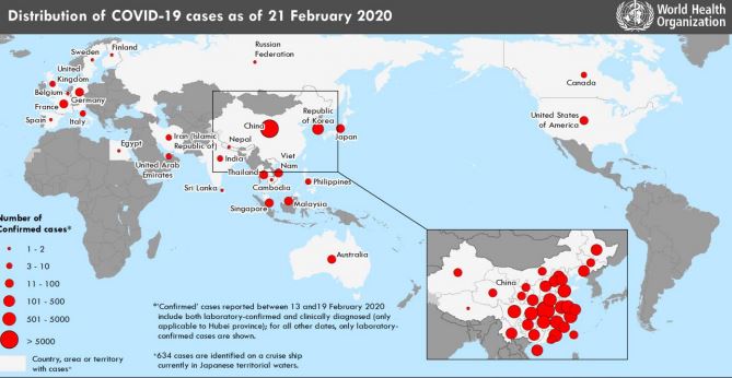 ВОЗ бьет тревогу по причине быстрого распространения коронавируса за пределами Китая. Карта