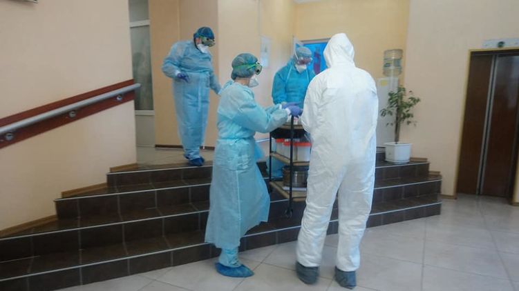 Медики в Новых Санжарах взяли анализы у эвакуированных из Уханя. Фото: Oleksandr Makhov