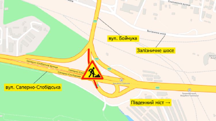 Движение ограничено с 22 февраля до 22 марта на пересечении улиц Бойчука и Саперно-Слободской. На выезде с улицы Бойчука в направлении Южного моста начали ремонт деформационных швов. Работы продлятся в два этапа: первый - до 7 марта, второй - до 22 марта. Во время работ движение частично будет ограничено.