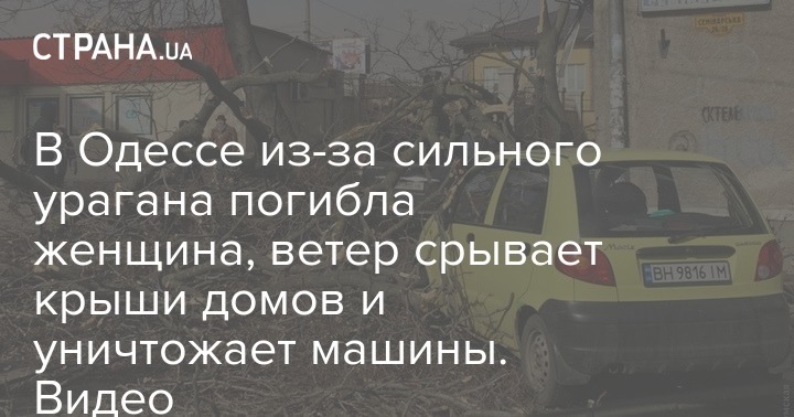 В Одессе из-за сильного урагана погибла женщина, ветер срывает крыши домов и уничтожает машины. Видео