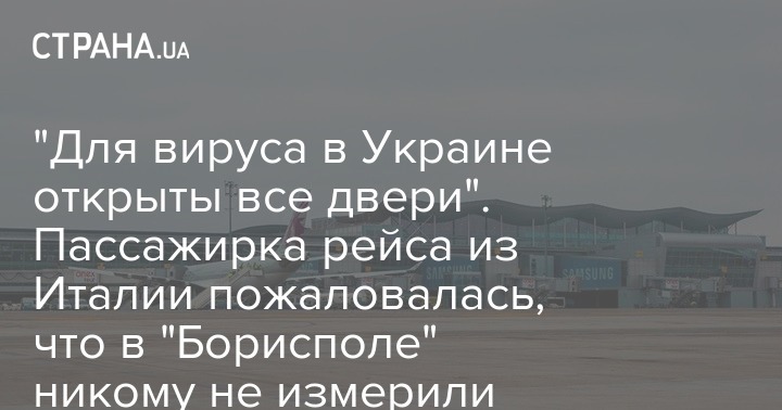 "У нас только что был рейс из Рима. В самолете сказали - сейчас будет медицинский контроль, оставайтесь на местах. Но через минуту всех выпустили. Без всякого контроля..." - написала девушка вечером в понедельник, 24 февраля.