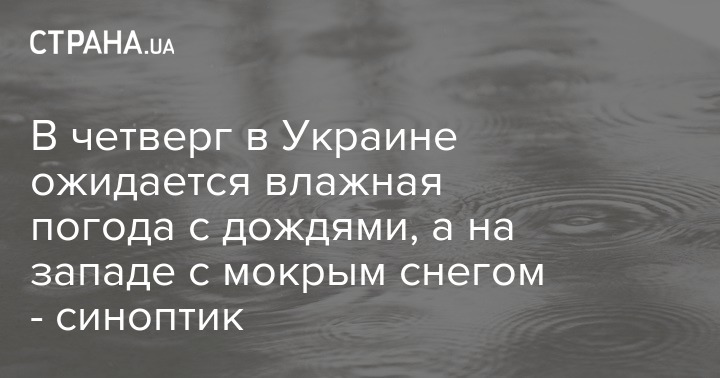 В четверг в Украине ожидается влажная погода с дождями, а на западе с мокрым снегом - синоптик