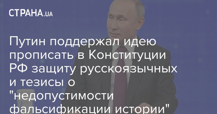 Путин поддержал идею прописать в Конституции РФ защиту русскоязычных и тезисы о "недопустимости фальсификации истории"