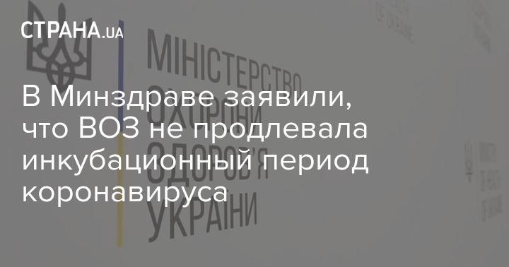 Министерство охраны здоровья Украины опровергло информацию о том, что Всемирная организация здравоохранения продлила инкубационный период коронавируса. Ранее в прессе сообщалось, что ВОЗ установил новый срок от заражения до появления симптомов в 28 дней.