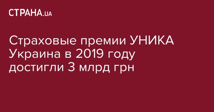 Страховые премии УНИКА Украина в 2019 году достигли 3 млрд грн