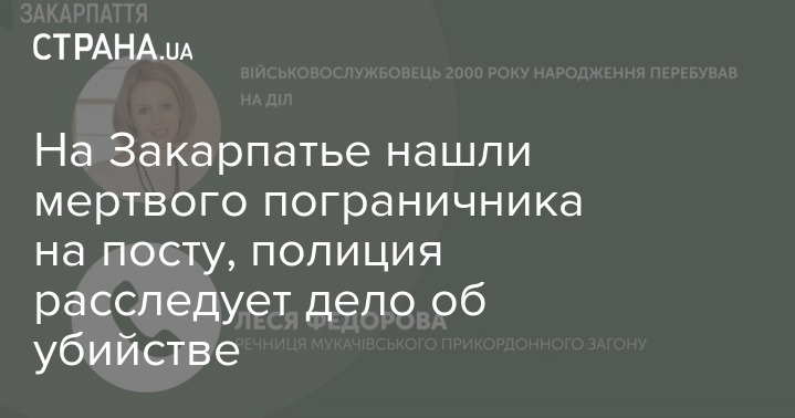Пресс-секретарь Нацполиции Закарпатья Анна Дан, в свою очередь, сообщила, что в связи со смертью пограничника начато уголовное производство по части 1-й статьи 115 Уголовного кодекса Украины, то есть "умышленное убийство". Судебно-медицинская экспертиза должна установить непосредственную причину смерти.