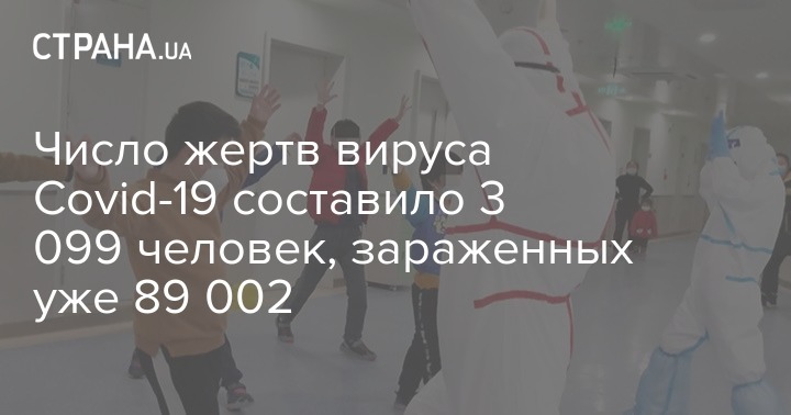По состоянию на 00:00 часов по китайскому времени вторника 3 марта, (19:00, 2 марта, по Киеву - Ред.) число заболевших новой формой пневмонии составило 89 002 человека, умерло уже 3 099 человек (здесь произошла корректирвока данных, так как вчера власти Китая сообщали о 3 141 умершем от вируса пациенте - Ред.).