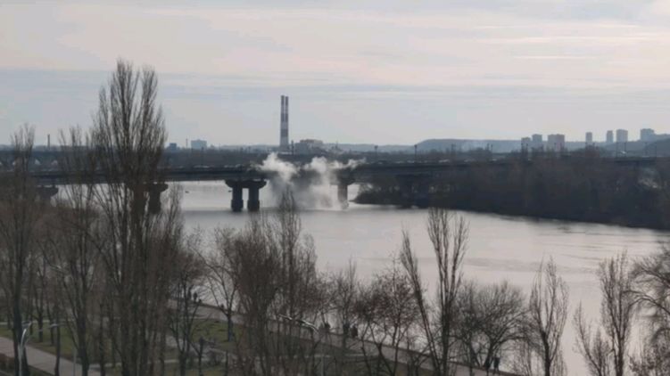 Днем 3 марта в Киеве на Мосту Патона, под которым проходит много коммуникаций, произошел прорыв трубопровода. В соцсетях и на YouTube появились многочисленные видео, а также фотографии моста, снятые очевидцами.