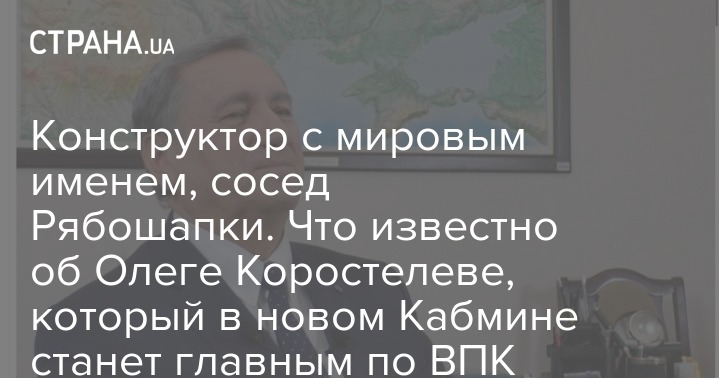 Вице-премьером по промышленности и ВПК предложили назначить Олега Коростелева - 70-летнего главу Конструкторского бюро "Луч", которое производит современное оружие и входит в состав госконцерна "Укроборонпрома".