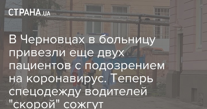 В Черновицкую областную клиническую больницу, в инфекционном отделении которого находится первый официально зарегистрированный в Украине пациент с коронавирусом, привезли еще двух людей с подозрением на заражение. После этого одежду водителей скорой помощи, которые их доставили, забрали для утилизации.
