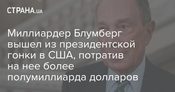 Миллиардер Блумберг вышел из президентской гонки в США, потратив на нее более полумиллиарда долларов